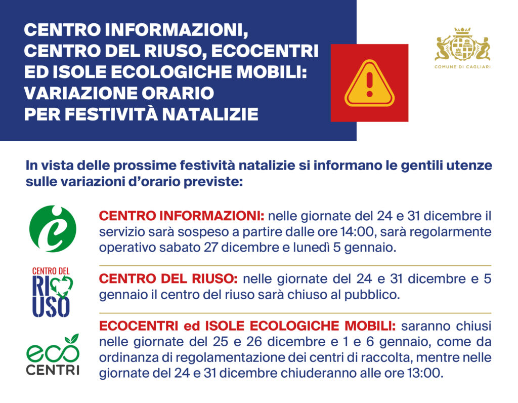 Centro informazioni, Centro del riuso, Ecocentri ed Isole Ecologiche: Variazione orario per festività natalizie